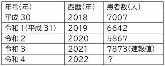 ここ十数年で急激に増加している性感染症の一つに「梅毒」が挙げられます。昨今、新型コロナウイルス関連の情報が優先されてきましたが、その陰で梅毒は依然として収束には向いていません。2021年速報値で2018年のピークを越え、7873人と打ち出されました(図表1)。