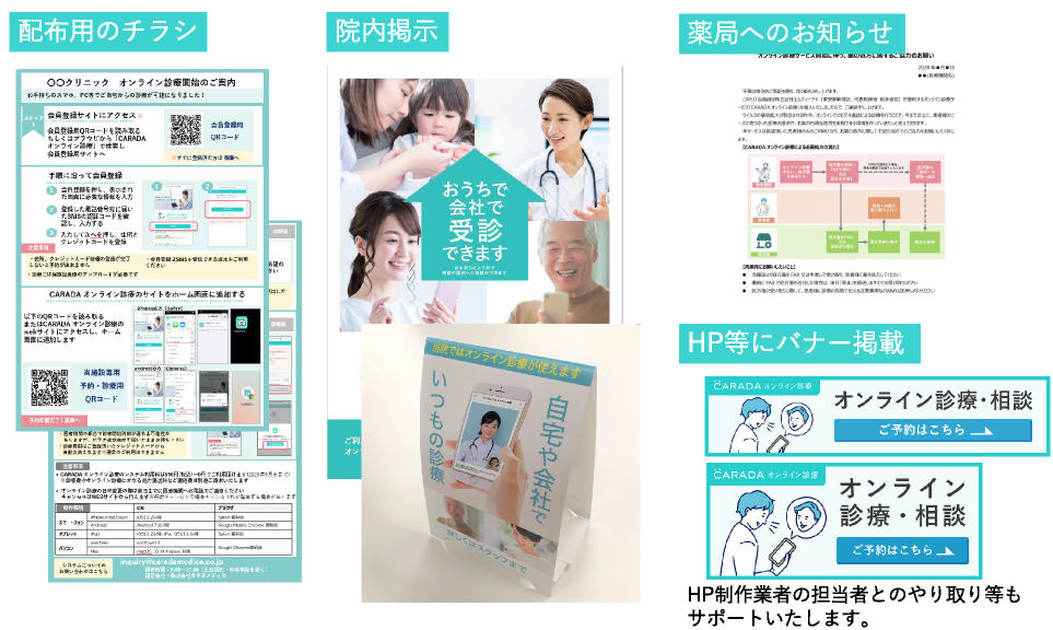 ポスター、POP、HP掲載の素材等の患者様へのご案内に必要な販促物をご用意