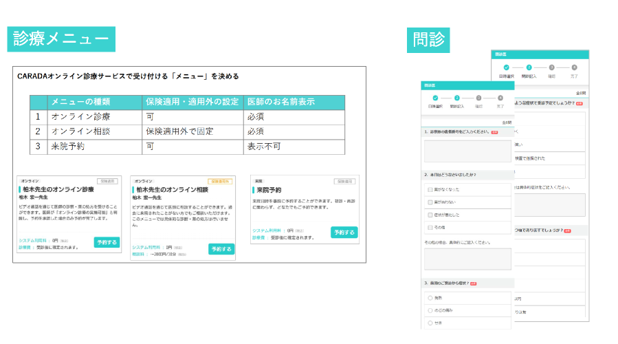 診療メニューや問診票の作成