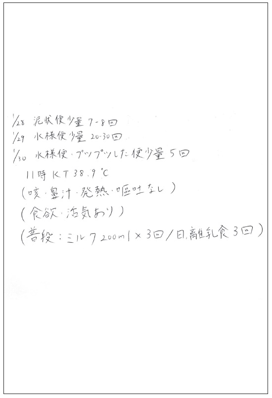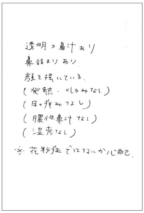 [写真1]筆者の院の看護師が実際に作成した問診メモ①
