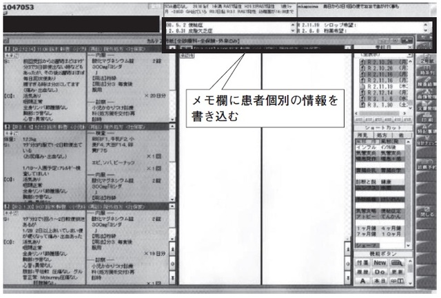【写真】私の院で実際に使用している電子カルテ(メモ欄を活用する)