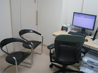 診察室では、患者さんのプライバシーを守りつつ患者さんが十分お話をして頂けるよう落ち着いた雰囲気の部屋にしております。