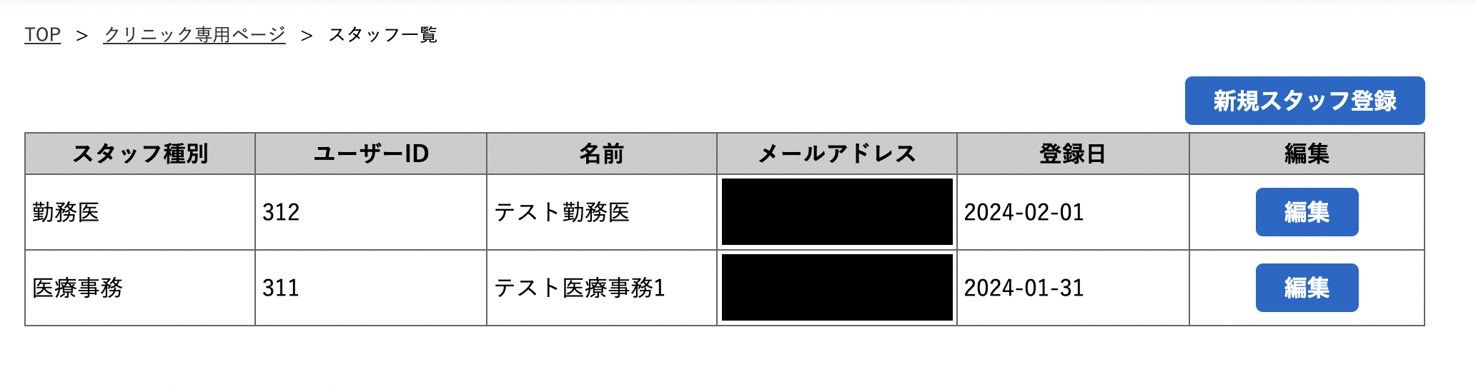 ※「新規スタッフ登録」はクリニックアカウントからのみ操作が可能です。