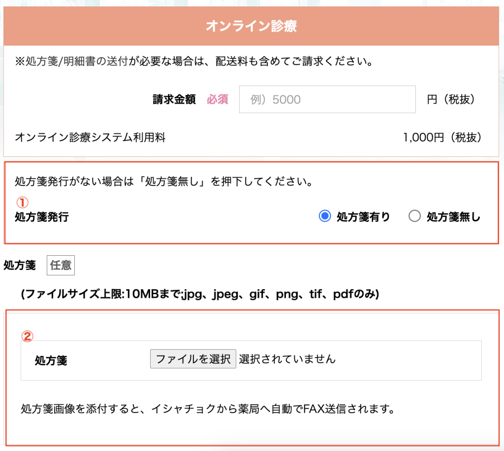 • 処方箋送付機能は基本的に任意になります。処方箋の送付を急ぐ場合は、クリニックのFAXよりお送りください。