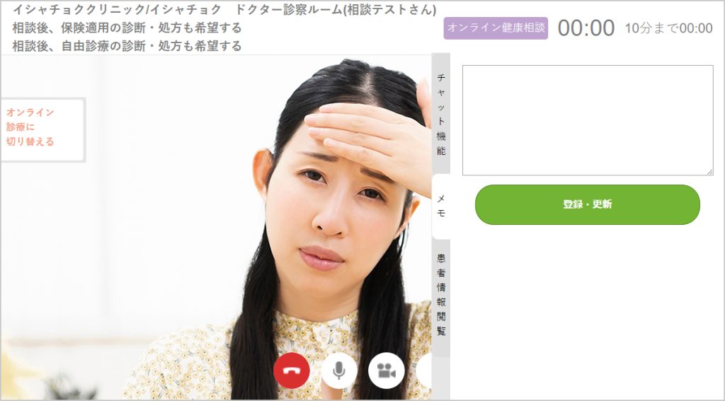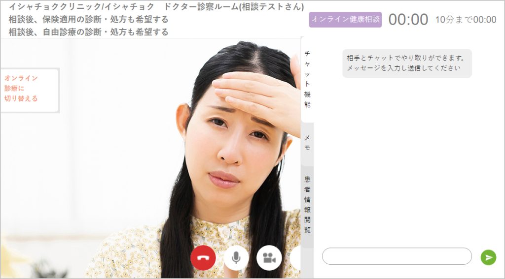 オンライン健康相談は、10分間の通話を基本としており、延長操作を行わなかった場合、計測開始から10分が経過すると、通話は自動終了します。