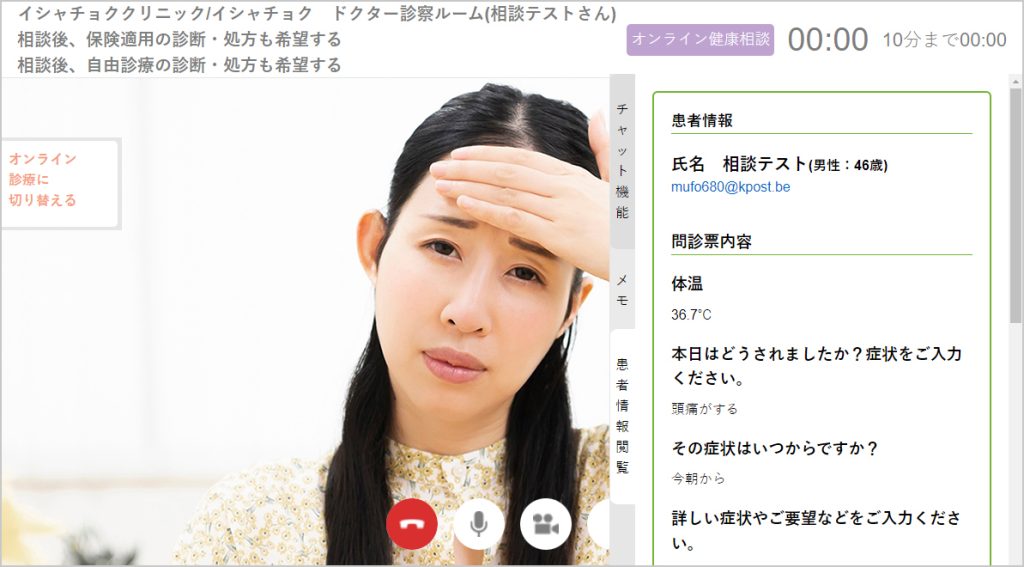 オンライン健康相談において、診断や薬の処方が必要だと判断した場合、オンライン診療に移行することもできます。
