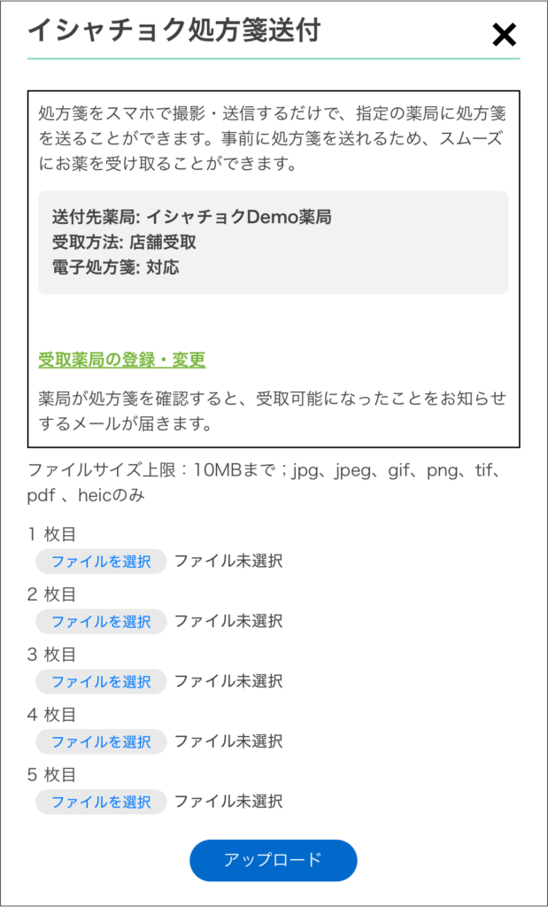 STEP7:「アップロード」をタップすると処方箋が送信されます。