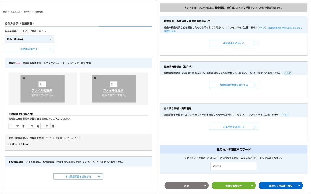 オンライン診療のご利用時に必要な保険証や健康診断結果の登録ができます。