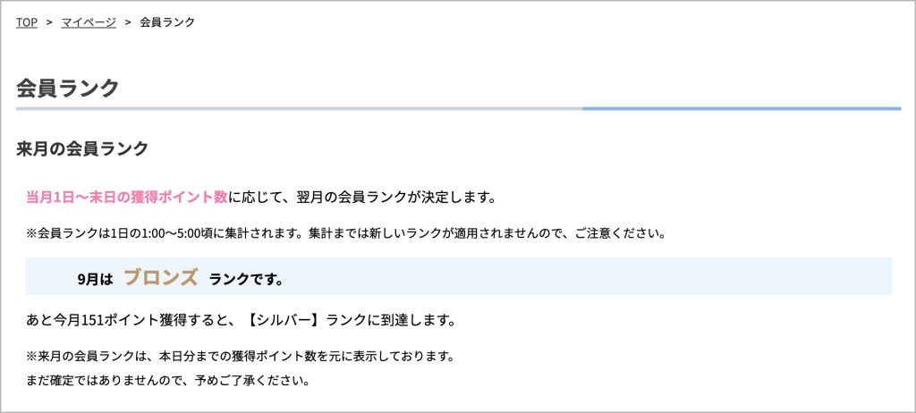 来月の会員ランクの確認ができます。