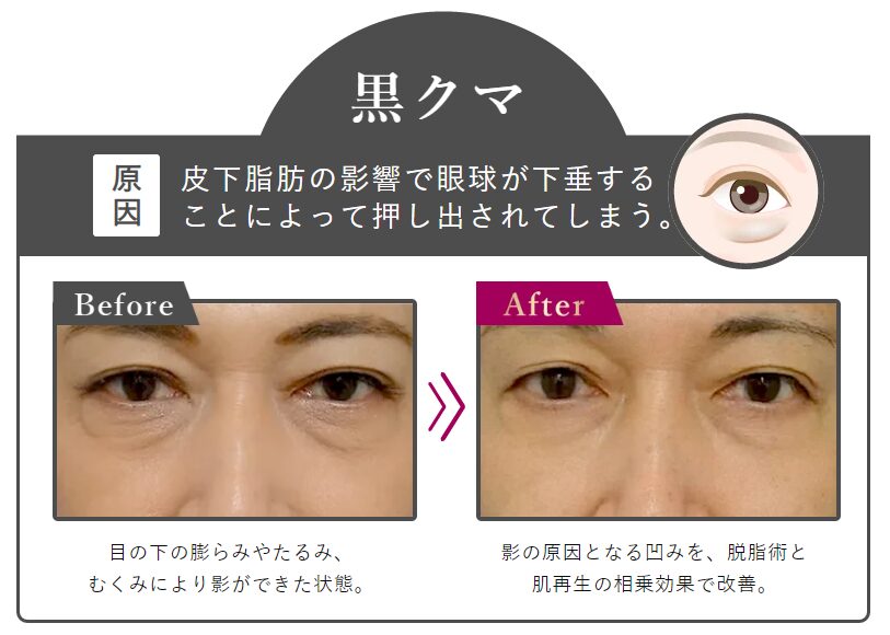 そのため、脂肪の膨らみが原因の「黒クマ」の方がこの施術だけを受けても、根本的な膨らみの解消にはならず「効果がなかった」と感じてしまう場合があるでしょう。