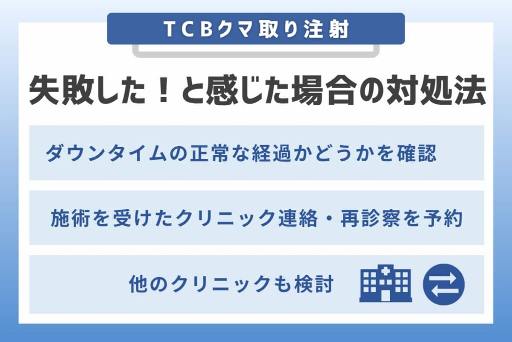想定していたよりもダウンタイムが長引いたり、症状が強く出たりするケースも「失敗したのではないか」という不安につながります。