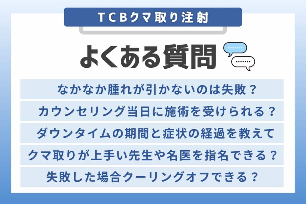 ここでは、TCBのクマ取りに関して、多くの方が抱く疑問や不安についてQ&A形式で回答します。