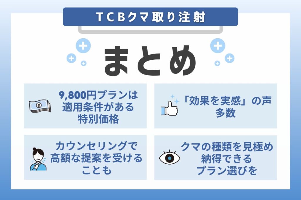 この記事では、TCB東京中央美容外科のクマ取りに関するリアルな口コミ、失敗と感じる主な理由、そして9,800円プランを含む料金体系の真相について解説しました。