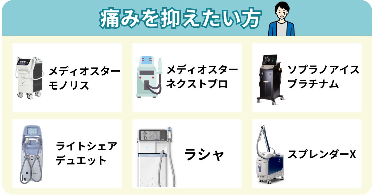 しかし、医療脱毛クリニックの一部では希望する機械を選べる場合があります。