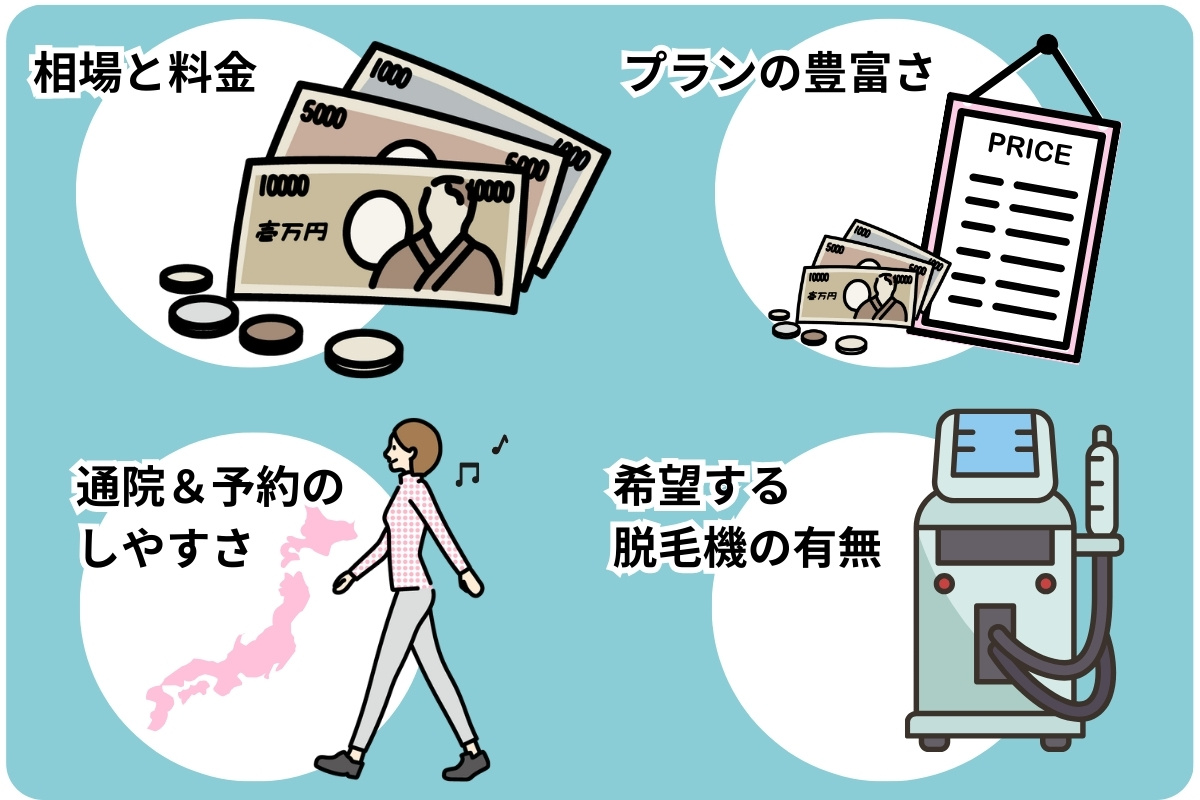 はじめに自身に適した医療脱毛クリニックを選ぶポイントについて、4つ紹介します。