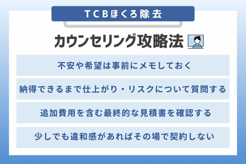 TCBでの施術を検討する際は、当サイトで解説した料金体系や失敗回避策を参考に、自身が納得できるかを判断しましょう。