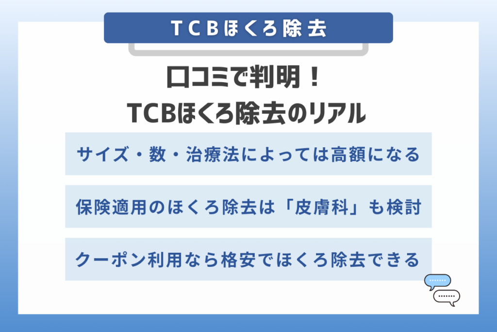 この記事では、TCBほくろ除去の口コミ評判について、特に料金の真相とよくある失敗例を中心に解説しました。