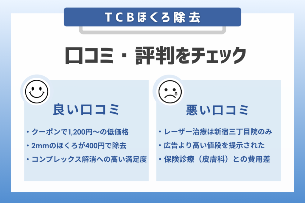 TCB東京中央美容外科のほくろ除去に関する口コミを調査すると、料金や仕上がりについて様々な意見が見られます。
