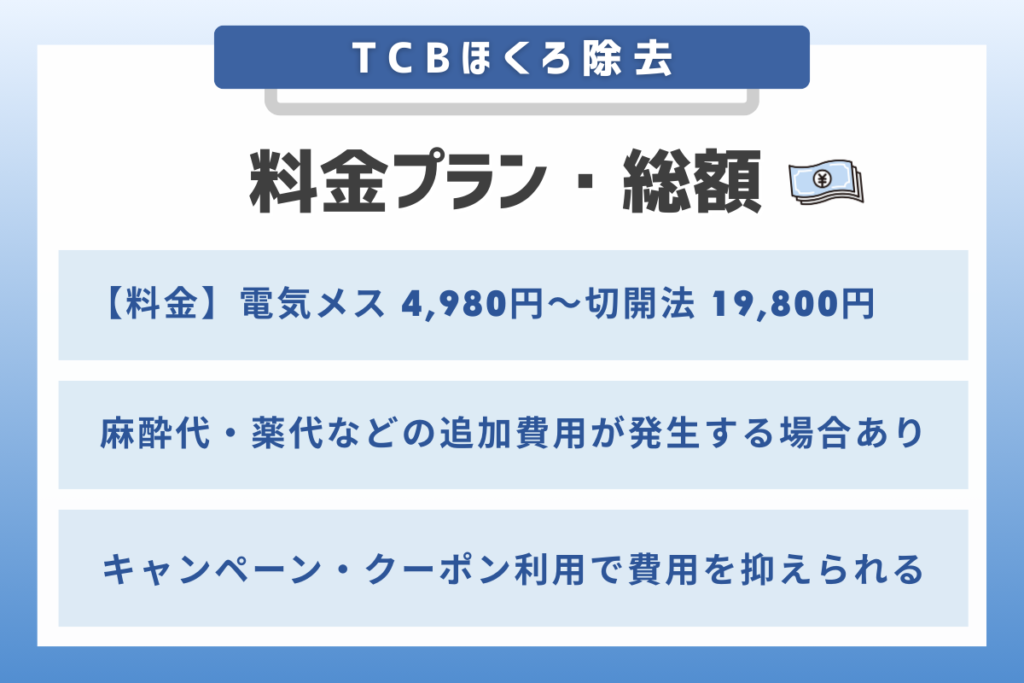 TCBのほくろ除去を検討する上で最も重要なのが、最終的にいくらかかるのかの総額費用です。