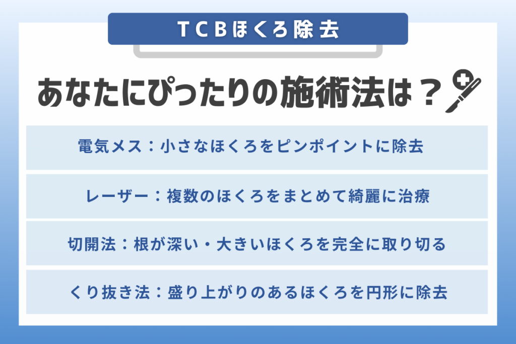 TCBではほくろ除去が安価に施術できる可能性がありますが、ほくろの数や大きさ、選択する施術法によっては高額になるケースもあります。